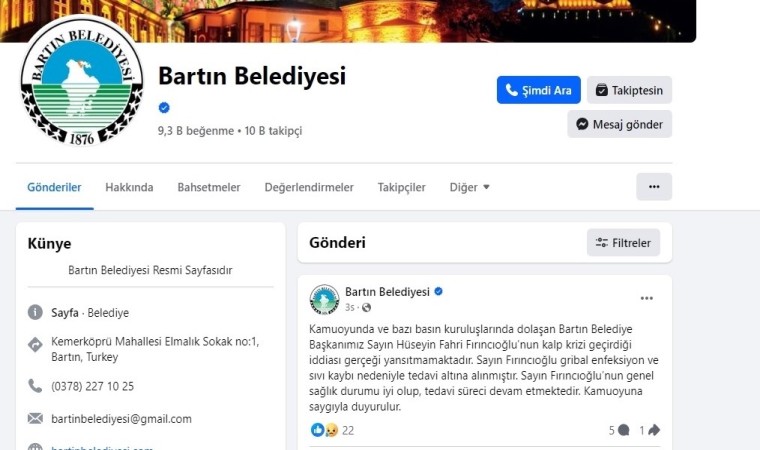 Bartın Belediye Başkanı Hüseyin Fahri Fırıncıoğlu, şehirde bulunan özel bir hastaneye kaldırılarak tedavi alındı. Başkan Fırıncıoğlu’nun hastaneye kaldırıldığı anlarda, kalp krizi geçirdiği ve yoğun bakıma alındığı yönünde haberler üzerine bazı protokol ve siyasetçiler, büyük şok yaşadı. Bartın Belediyesi’nin sosyal medya hesaplarından yapılan açıklama ile gerçek ortaya çıktı.