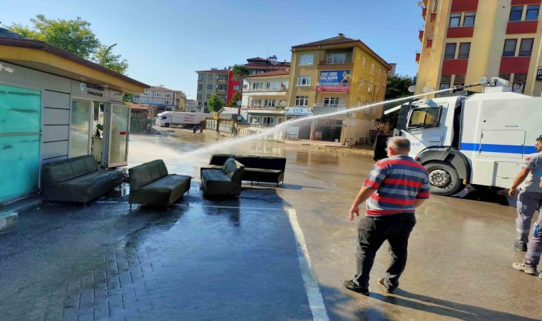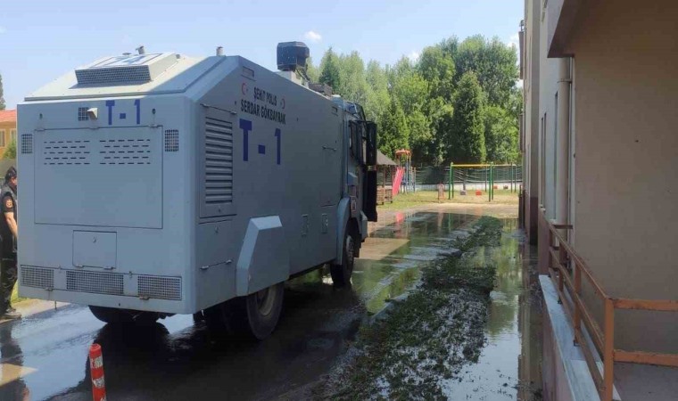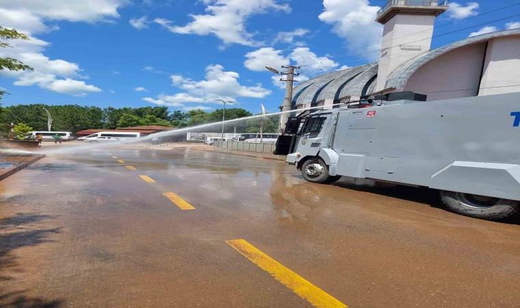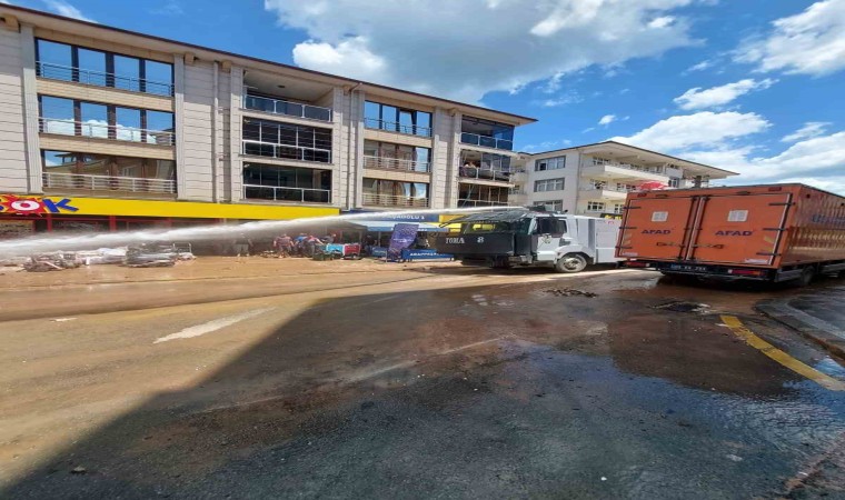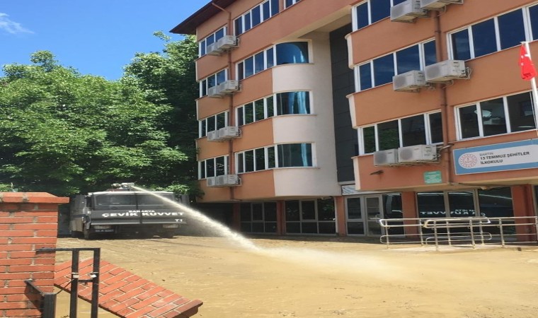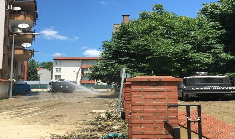 Bartın’da selin ardından temizlik çalışmaları polis emniyet araçları TOMA’larla yapıldı.