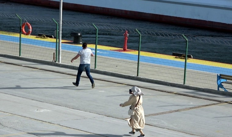 Geminin demirlediği limanın mendireğinde gezen yerli turistler ve bölge halkı ise ilgiyle limandan ayrılan gemiyi izledi. Gemi ayrıldığı sırada cep telefonları ile görüntülemek isteyen iki vatandaşın geminin ardından koşturması ise dikkat çekti. Geminin peşinden bir süre koşan Türkleri gören bir Rus turist ise, onlara el sallayarak veda etti.