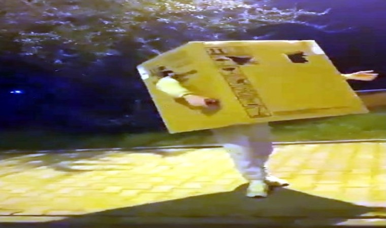 Bartın Orman İşletmesi önündeki kaldırımda yaklaşan bir hafta önce çekilen görüntülerde koli içerisine kendisini gizleyen genç, elindeki cep telefonunun flaşı ile bazı sürücüleri korkuttu, bazılarını ise güldürdü.