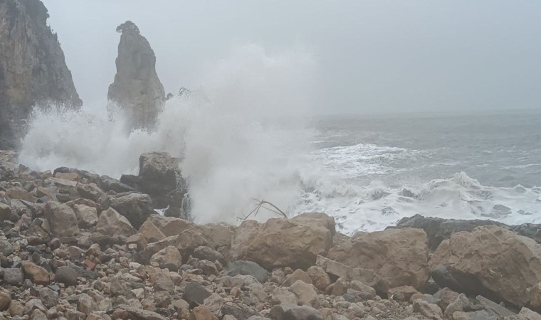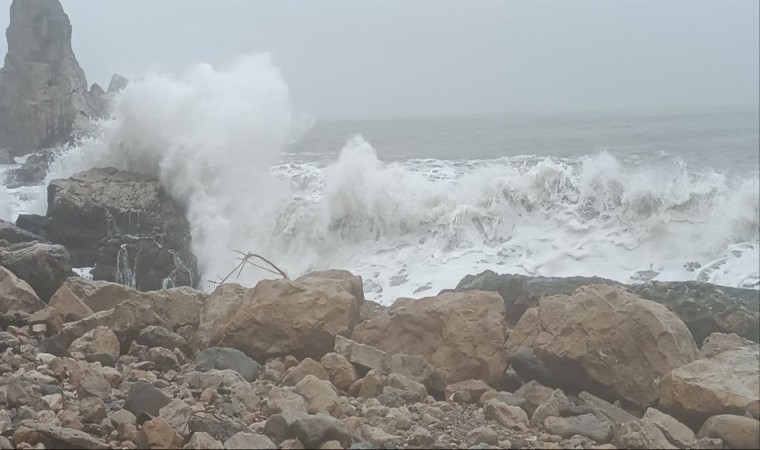 Bartın’ın Amasra ilçesinde etkisini artıran fırtınada, sahil kenarlarında dalga boyu 5 metreyi buldu.