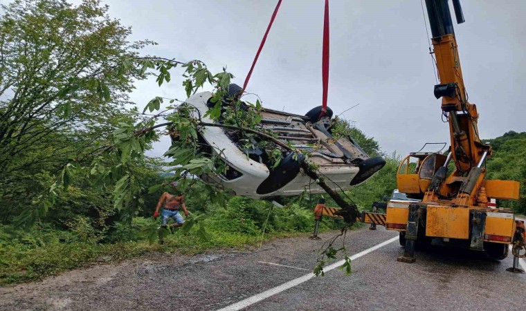 Edinilen bilgiye göre, Darıören köyünden Bartın istikametine seyreden U.B. yönetimindeki 16 ACJ 109 plakalı otomobil, yağmur nedeniyle kayganlaşan yolda kontrolden çıktı. Yoldan çıkan araç, ağaçlara çarparak yaklaşık 10 metre yükseklikten ırmağa uçtu. Ters dönen aracın içerisinde yaklaşık 30 dakika mahsur kalan sürücü, ihbar üzerine olay yerine sevk edilen itfaiye ekiplerince araçtan çıkarıldı. Kazadan yara almadan kurtulan sürücünün kullandığı otomobil ise olay yerine çağrılan çekici yardımıyla ırmaktan çıkarıldı. Maddi hasar meydana gelen araç, ön kaportasına sıkışan ağaç dalları ile birlikte ırmaktan çıkarıldı.