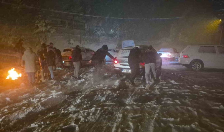 Yollarda kalan vatandaşlar ise kar yağışını eğlenceye dönüştürdü. Ateş yakıp ısınan vatandaşlar, kar topu oynayarak kar yağışının keyfini sürdü.