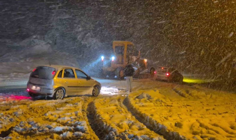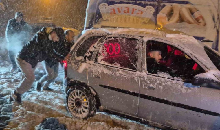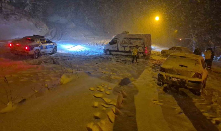 Bartın’ın Ulus ilçesindeki yüksek kesimlerdeki köylerinde, Bartın’ın Arıt bölgesindeki bazı köylerde ve Bartın-Karabük karayolunda kar yağışı aralıklarla sürüyor. Yollarda zaman zaman kalınlığı 30 santimetreyi aşan kar ve buzlanma nedeniyle sürücüler zor anlar yaşadı. Zincir bulunmayan ve yaz lastikleri ile yola çıkan sürücüler, kaza yapmadan seyir edebilmek yoğun çaba sarf etti. Yoğun kar yağışında kalan ve kara saplanan araçlar ise vatandaşlsr tarafından itilerek kurtarıldı.