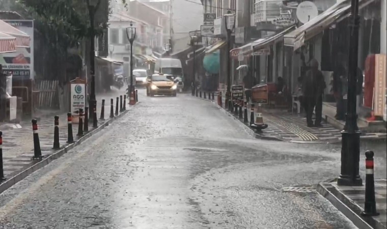 Yağışlardan etkilenen hayvanlar ile yağmura hazırlıksız yakalanan insanlar, ev ve işyerlerinin önlerine sığınarak sığınarak, yağışların dinmesini bekliyor.