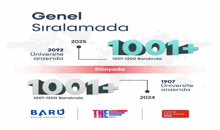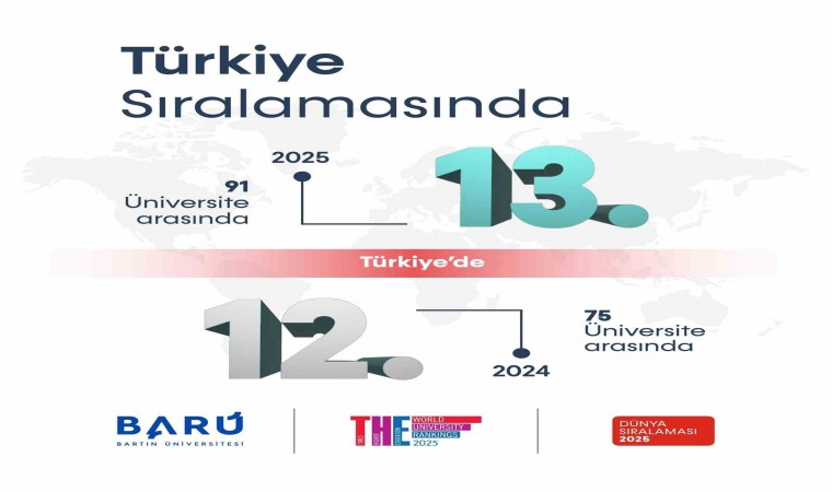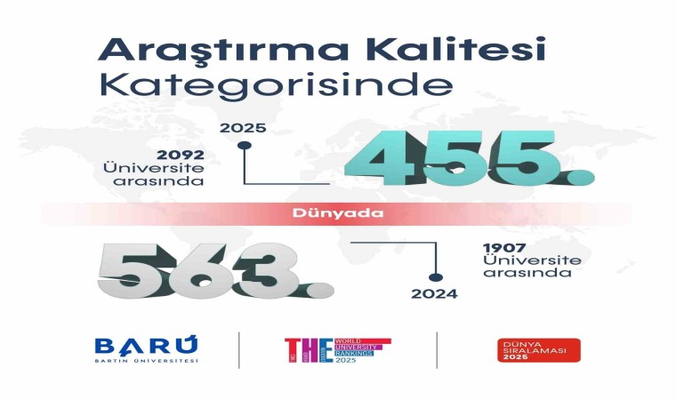Bartın Üniversitesi (BARÜ) Times Higher Education (THE) 2025 Dünya Üniversite Sıralaması ‘Araştırma Kalitesi’ kategorisinde dünyada 455., Türkiye’de ise 2. sırada yer aldı. BARÜ ayrıca, genel sıralamada 1001-1200 bandındaki yerini koruyarak Türkiye’nin en iyi 13. üniversitesi oldu.