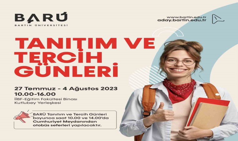 BARÜ Tanıtım ve Tercih Günleri boyunca saat 10.00 ve 14.00’da Bartın Cumhuriyet Meydanından otobüs seferleri düzenlenecek.