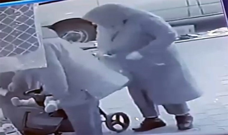 Başakşehir’de bir işyerinin önünde ürünleri inceleyen yabancı uyruklu kadının bebek arabasında bulunan çantayı gözüne kestiren 2 hırsızdan biri kadının önünü kapatırken diğeri arabadaki çantayı çalarak kaçtı. O anlar güvenlik kamerası tarafından kaydedildi.