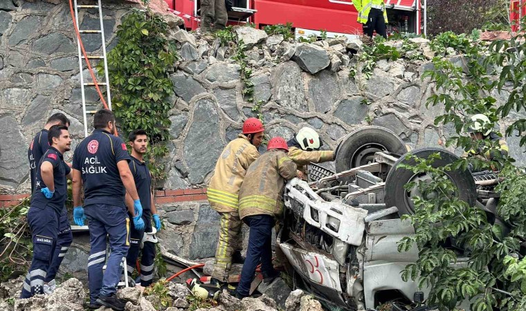 İstanbul Başakşehir’de sürücüsünün kontrolünden çıkan bir kamyonet, reklam panolarına çarparak yıktıktan sonra MASKO Mobilyacılar Sitesi’nin bahçesine düştü. Kazada kamyonete sıkışan sürücü, itfaiye ekiplerinin uzun uğraşları sonucunda kurtarıldı. Sürücünün, 5 metre yükseklikten sitenin bahçesine düştüğü anlar güvenlik kamerasına yansıdı.