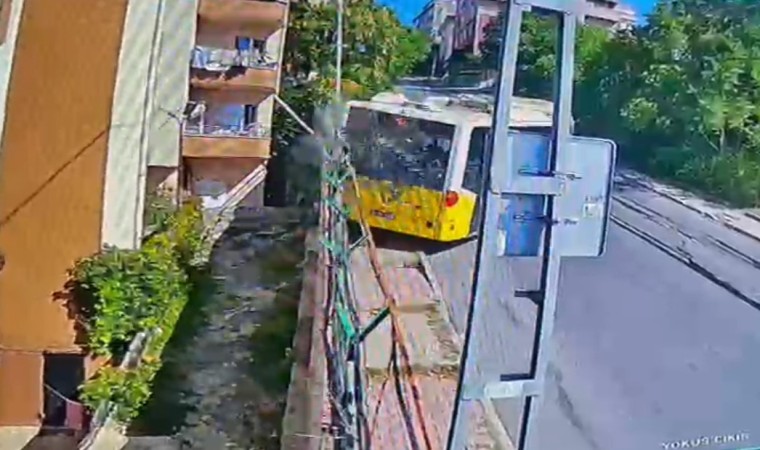 Başakşehir Güvercintepe’de içinde yolcular bulunduğu sırada rampadan çıkamayarak devrilen İETT otobüsünün kaza anı kameraya yansıdı.