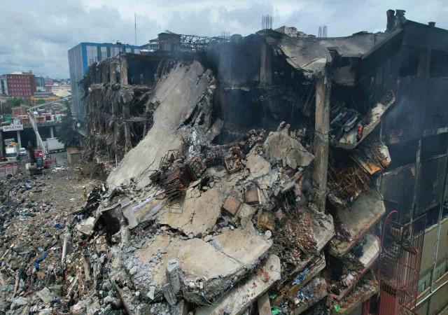 Başakşehirdeki iş hanın son durumu havadan görüntülendi