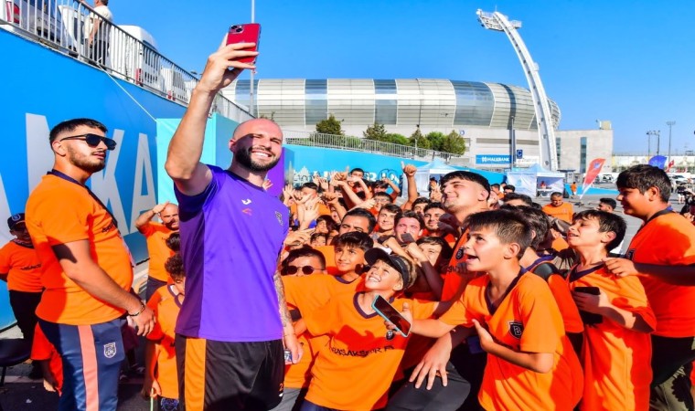 Fatih Karagümrük ile oynanan maç öncesinde Başakşehir Başkanı Göksel Gümüşdağ ve Brezilyalı futbolcu Joao Figueiredo, stat dışındaki eğlence alanında minik taraftarlar ile buluştu.