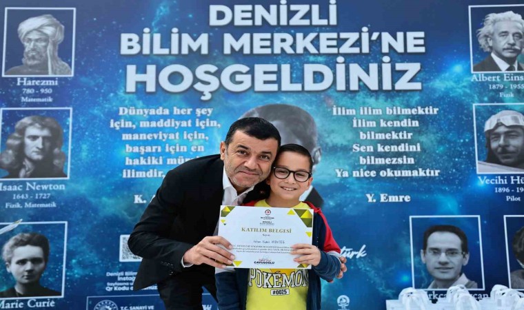 Denizli Bilim Merkezi Bilim Atölyeleri Ara Tatil Programı tamamlandı. Denizli Bilim Merkezindeki 6 ayrı bilim atölyesinde tatillerini eğlenerek ve öğrenerek geçiren çocuklar için katılım başarı belgesi töreni düzenlendi. Nihat Zeybekci Kongre ve Kültür Merkezi’nde düzenlenen programa Büyükşehir Belediye Başkanı Bülent Nuri Çavuşoğlu, Başkanvekili Ali Marım, Genel Sekreter Yardımcısı Özgür Başkurt, Kültür ve Sosyal İşleri Dairesi Başkanı Mehmet Selçuk, davetliler, veliler ve öğrenciler katıldı. Başkan Çavuşoğlu burada yaptığı konuşmada bilime inanan güzel bir Türkiye, güzel bir Denizli hayalinde kendilerine eşlik eden minikler ve velilerine teşekkür ederek, “Atatürk’ün de dediği gibi ‘Dünyada her şey için, maddiyat için, maneviyat için, başarı için en hakiki mürşit ilimdir’ demiştir. Biz gerçekten buna inanıyoruz. Çünkü bilimin olmadığı yerde maalesef gerçeğe ulaşma şansımız mümkün değildir. O anlamda çocuklarınızı bu tür etkinliklere getiriyor olmanız gerçekten çok önemli” dedi.