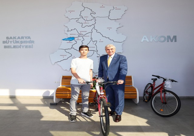 Sakarya Büyükşehir Belediye Başkanı Ekrem Yüce, eğitimde ve spor alanında başarılı olan Sakaryalı öğrencilere bisiklet hediye etti. Başkan Yüce, bu tür ödüllendirmelerin başarıları teşvik ettiğini ve şehirde bisiklet kullanımının artmasına katkı sağladığını belirtti.