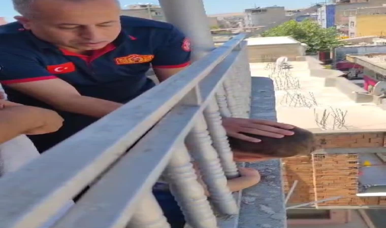 Başı balkon demirlerine sıkışan çocuğu itfaiye kurtardı