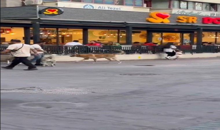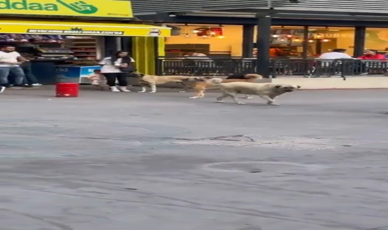 Ankara’da başıboş sokak köpekleri, küçük çocuğu olan bir kadının etrafını çevirdi. O anlar bir vatandaşın cep telefonu kamerasına yansıdı.