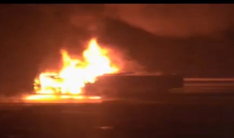 Polis ekipleri yolda güvenlik önlemi alırken itfaiye ekipleri alev alev yanan otobüse müdahale etti.