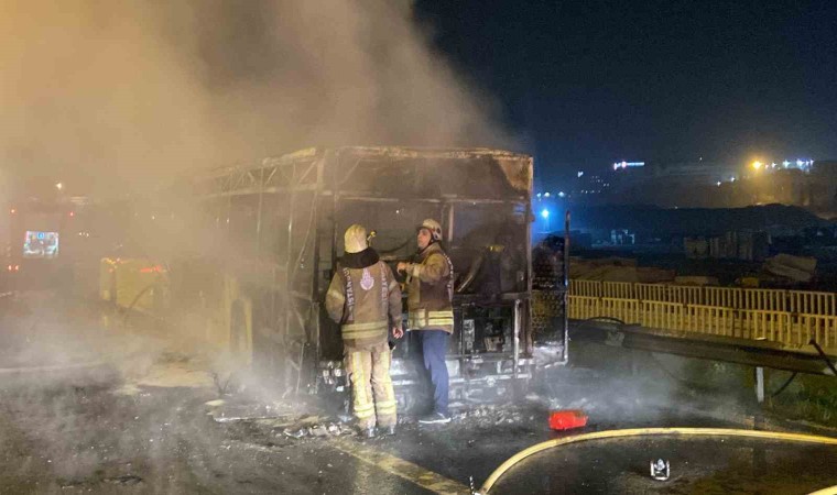 Bahçelievler Basın Ekspres yolu üzerinde seyir halindeki körüklü İETT otobüsü alev alev yandı. Yangın itfaiye ekiplerince söndürülürken İETT otobüsünün boş olması olası bir faciayı önledi.