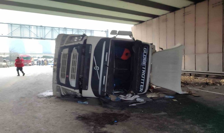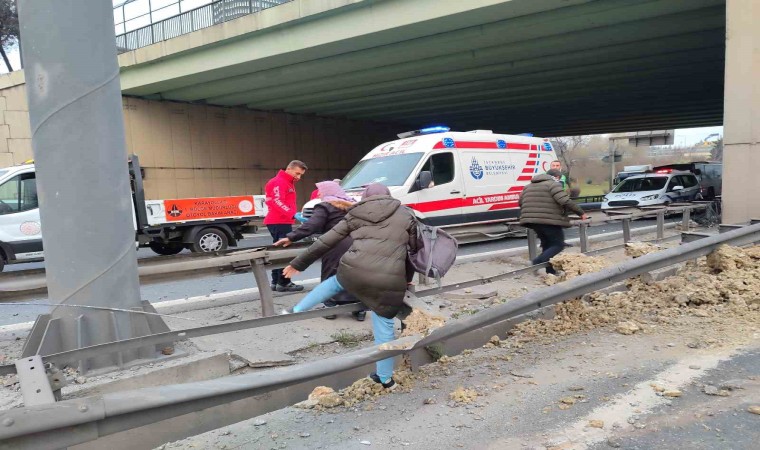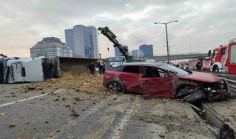 Kaza Bağcılar Basın Ekspres Karayolu Başakşehir istikametinde saat 09.00’da meydana geldi. Edinilen bilgiye göre, Rıdvan Akgül yönetiminde seyir halindeki 34 AJ 6691 plakalı hafriyat yüklü kamyon, anayola çıkarken virajı alamayıp Ahmet Şeker yönetiminde seyir halindeki 34 CMR 688 plakalı otomobil ile çarptı. Kazanın ardından hafriyat kamyonu yan yatarak durabildi. Bu sırada arkadan gelen Kayhan Günaslan yönetimindeki 34 ZM 504 plakalı hafriyat kamyonu da kazadan kaçmak isterken bariyerlere çarpıp devrildi.