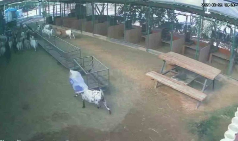 Antalya’da başına çuval dolanan keçi, ağılda bulunan diğer hayvanların adeta aklını başından aldı. Sosyal medyada yayılan ve korkudan kaçışan keçilerin komik anları güvenlik kamerasına yansırken, izleyenler gülme krizine girdi. Keçilerin sahibi Hüseyin Kılar, "Sabah kalktığımda bütün hayvanların bahçede olduğunu gördüm. Yemlemek için bahçeye indim, bütün hayvanların yeme gelmediğini fark ettim. Yemlerini verdim hala yem yemiyorlardı. Bir şeyden korktuklarını düşünüp kameraları inceldim, bu durumla karşılaştım" dedi.