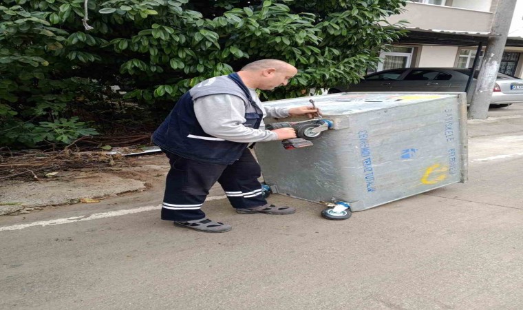 Başiskele’de bulunan metal evsel atık ve geri dönüşüm konteynerlerinin düzenli olarak bakım ve onarımı yapılıyor.