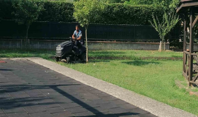 Son yağışlar sonrası parklar ve yeşil alanlarda çok fazla uzayan çimler çim biçme makineleriyle biçilirken; yol kenarlarında, kaldırımlarda, orta refüjlerde uzayan yabani otlar da tırpanla temizleniyor.