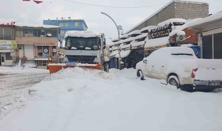 Başkale ilçesinde dün sabah saatlerinden itibaren yağan kar yağışı hayatı olumsuz yönde etkiledi. Aralıklarla devam eden kar yağışı nedeniyle araçlar resmen kar altında kalırken, 88 kırsal mahalle ve mezra yolu da ulaşıma kapandı. Kar kalınlığının şehir merkezinde 30 santimetre, yüksek kesimlerde ise 1 metreyi geçtiği ilçede Van Büyükşehir Belediyesi ve Başkale Belediyesi karla mücadele ekipleri kapanan mahalle ve mezra yollarını yeniden ulaşıma açmak için çalışmalarını aralıksız sürdürüyor. Güne karla uyanan esnaf, belediye ekiplerine yardımcı olup iş yerlerinin önlerini süpürerek, vatandaşların kaldırımda rahat yürüyebilmeleri için çaba sarf etti.
