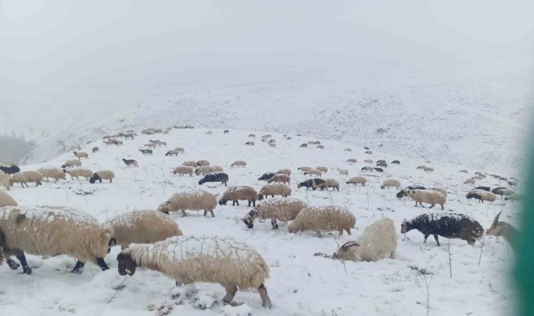 İlçede yüksek kesimlerde otlayan sürü de kar yağışına yakalandı. Kar yağışı etkisini sürdürürken ekipler karla mücadele çalışması başlattı.