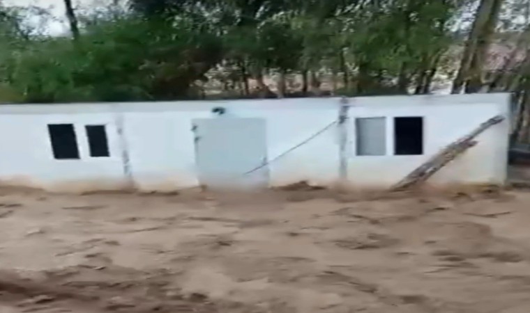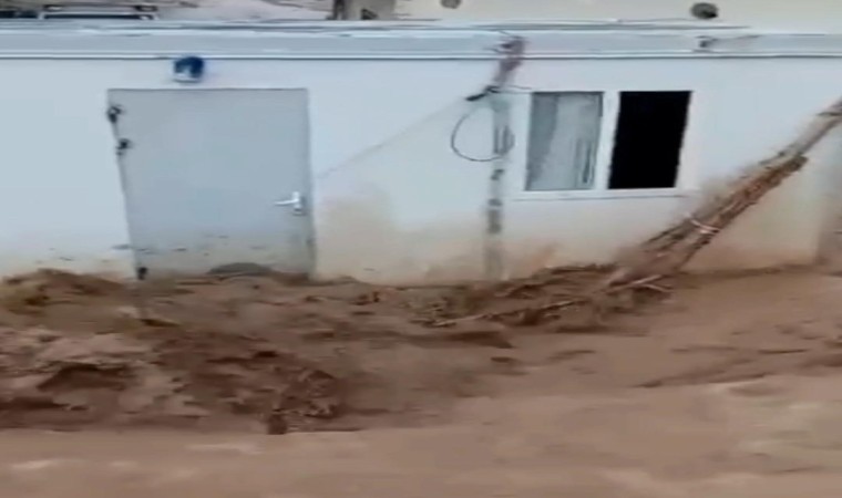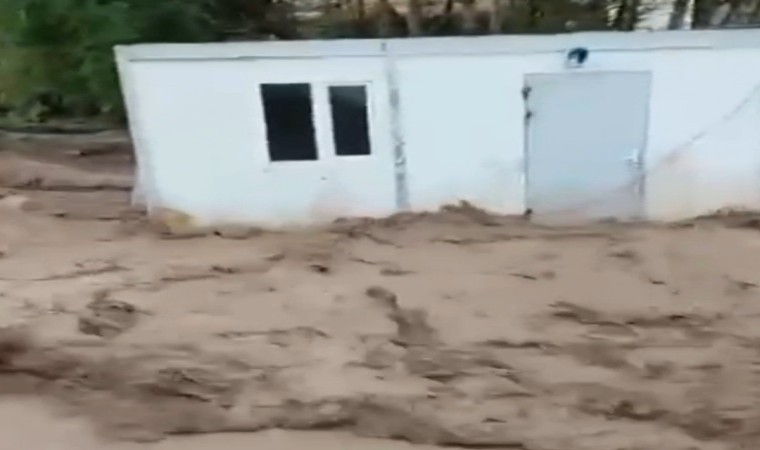 Van’ın Başkale ilçesinde dünden itibaren etkili olan ve özellikle gece yarısından sonra şiddetlenen yağışların neden olduğu sel, yaşam konteynerini sürükledi.
