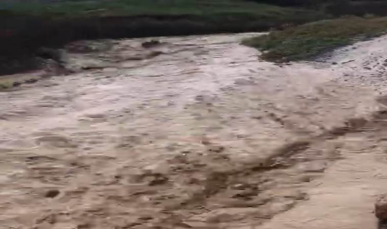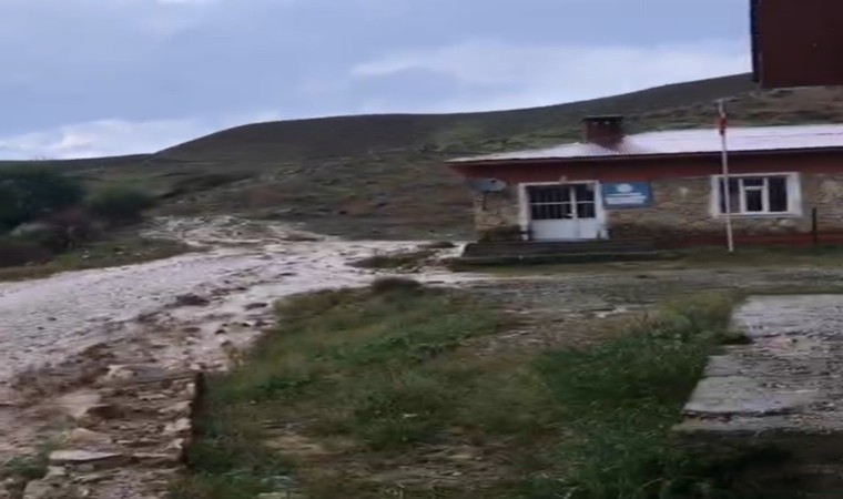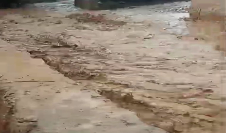 Van’ın Başkale ilçesinde etkili olan kuvvetli sağanak ve dolu yağışı sonrası sel meydana geldi, yollar dereye döndü.