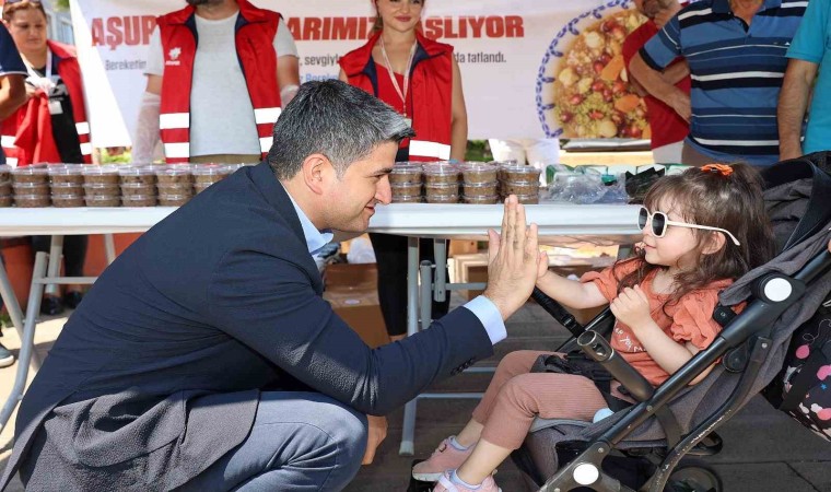 Muharrem ayı dolayısıyla Ataşehir’de gerçekleşen aşure ikramı programına katılan Ataşehir Belediye Başkanı Onursal Adıgüzel vatandaşlara aşure dağıttı.