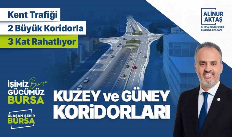 Bursa Büyükşehir Belediye Başkanı Alinur Aktaş, doğu batı hattında Kestel’den başlayıp Acemlerde çatallaşarak Mudanya ve İzmir yönünde iki kola ayrılmış tek bir ana ulaşım aksına sahip şehre ‘Kuzey ve Güney’ olmak üzere iki alternatif koridor oluşturduklarını söyledi. Başkan Aktaş, “Birbirine bağlantı yollarıyla beraber Bursa trafiği artık üçe bölünecek. Trafik yükümüz yaklaşık 3 kat hafiflemiş olacak” dedi.