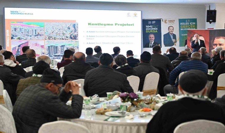 Keles özelinde yapılan yatırımları da anlatan Başkan Aktaş, 107 metre bordür, 7 bin 643 metrekare tretuar, 12 kilometre sıcak asfalt, 152 kilometre sathi kaplama, 120 bin metrekare parke temini ve 45 bin ton ocak malzemesi desteği verildiğini hatırlattı. 6 adet paket atık su arıtma tesisi, 165 kilometre içmesuyu hattı, 23 kilometre kanalizasyon hattı, 5 kilometre yağmur suyu hattı, 7 kilometre dere temizliği ve 7 adet su sondajı yapıldığını söyleyen Başkan Aktaş, “Keles Atıksu Arıtma Tesisi’ninde, Keles Menteşe Göleti’nde çalışmalar sürüyor. Keles, Kozbudaklar, Davutlar, Baraklı, Pınarcık ve Keles Kıranışıklar paket içmesuyu arıtma tesislerini hizmete aldık. Keles Katı Atık Aktarma İstasyonu devreye alındı. Kozbudaklar Düğün Salonu hizmete açıldı. Birçok tarımsal destekler yaptık. Çörek otunda elde edilen başarı hikayesinin benzerlerini yeni dönemde de yazacağız. Kapanmak üzere olan süs bitkileri kooperatifi ile birlikte çalışarak geçen sene 30 milyon TL ödeme yaptık. Hem kırsal üreticiyi destekliyoruz hem de ürünleri daha uyguna alıyoruz. Keles Kocayayla Kamp ve alanında imalatlar tamamlandı. Keles Sosyal ve Kültürel Hizmet Binası ilçeye hizmet veriyor. Biz pastayı büyütmek için çaba harcıyoruz” diye konuştu.