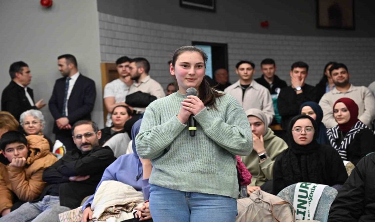 Gençleri merkeze alan projeleri ve gençlik kulübü uygulamasıyla ‘Genç Dostu’ şehir olan Bursa Büyükşehir Belediyesi, şehre kazandırdığı millet kütüphaneleri ve gençlik merkezleriyle ülkenin geleceği olan gençler büyük ayrıcalıklar sunuyor. Büyükşehir Belediye Başkanı Alinur Aktaş da Altıparmak’taki Millet Kütüphanesi’nde gençlerle biraraya geldi. Moderatörlüğünü Süleyman Dinçer’in yaptığı programa AK Parti Grup Başkanvekili Bahadır Yenişehirlioğlu, kanun sanatçısı Aytaç Doğan ve orkestrası, içerik üreticisi Muhammet Nahya ve Mehmet Dindar’ın da konuşmacı olarak katıldı. Gençlerin çok yoğun ilgi gösterdiği buluşmada, Muhammet Nahya yaptığı Cumhurbaşkanı Recep Tayyip Erdoğan, Mehmet Dindar ise ‘Aziz Yıldırım, Erman Toroğlu ve Bülent Ersoy’ taklitleriyle dinleyenlerden büyük alkış aldı. Canlı performans sergileyen sanatçı Aytaç Doğan ise, çaldığı birbirinden güzel eserlerle gençlere keyifli anlar yaşattı. Muhammet Nahya ve Mehmet Dindar’ın ‘Cumhurbaşkanı Erdoğan ve Devlet Bahçeli’yi karşılıklı konuşturduğu skeç ise gençler tarafından uzun süre alkışlandı.