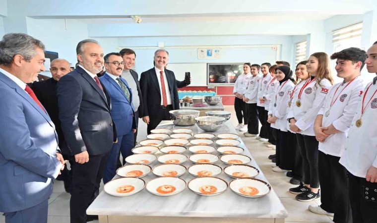 Bursa Büyükşehir Belediye Başkanı Alinur Aktaş, ‘20. Uluslararası Mutfak Günleri’nde 6 altın, 8 gümüş ve 1 bronz madalya kazanarak ‘En İyi Lise’ unvanını alan Hacı Sevim Yıldız 4 Mesleki ve Teknik Anadolu Lisesi’ni ziyaret ederek öğrencileri tebrik etti.