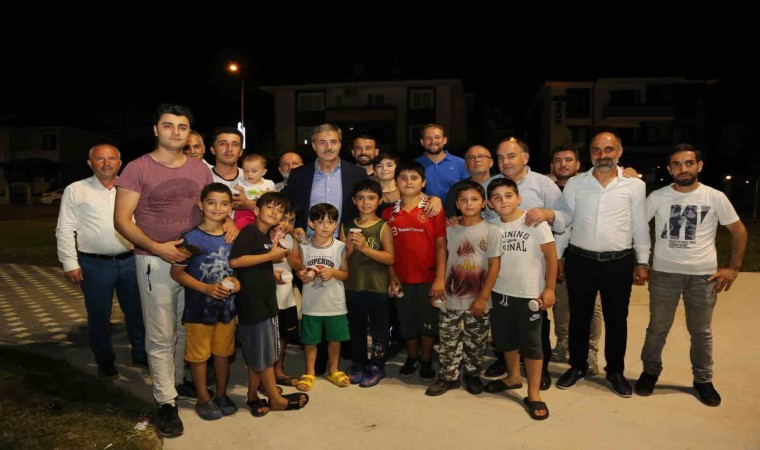 Yapımında sona gelinen Yazlık Bölgesel Park’ta mahalle buluşması gerçekleştiren Serdivan Belediye Başkanı Yusuf Alemdar, vatandaşlara dondurma dağıttı. Özellikle çocukların yoğun ilgi gösterdiği etkinlikle ilgili konuşan Alemdar, dondurma ikramıyla sıcak havada vatandaşları serinletmek istediklerini söyledi.