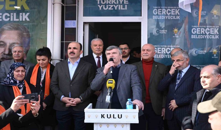 Cihanbeyli’den sonra Kulu ilçesine de bir ziyaret gerçekleştiren Başkan Altay burada ilk olarak AK Parti İlçe Seçim Koordinasyon Merkezi’nin açılışına katıldı. Cumhur İttifakı Kulu Belediye Başkan Adayı Abdurrahim Sertdemir, Kulu’ya güzel hizmetler yapacaklarına inandıklarını belirterek, özellikle Konya Büyükşehir Belediye Başkanı Uğur İbrahim Altay’la güzel bir Kulu’yu ortaya çıkaracaklarına inandıklarını söyledi.