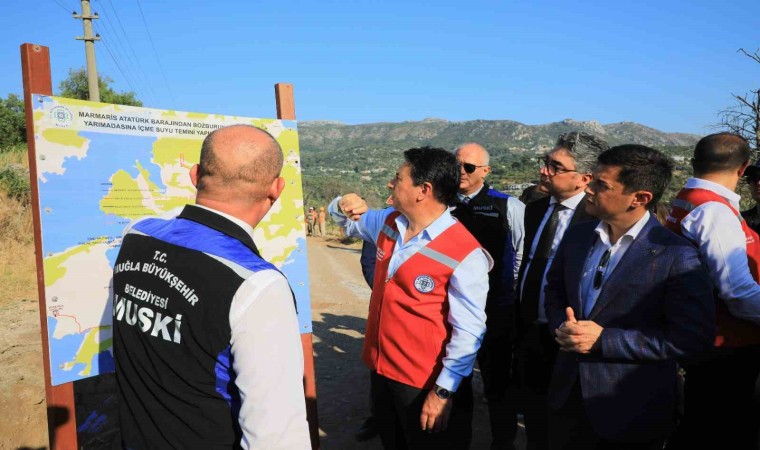 Bozburun - Söğüt Mahalleleri arasında projenin devam ettiği bölgeyi ziyaret eden Muğla Büyükşehir Belediye Başkanı Ahmet Aras burada MUSKİ yetkililerinden çalışmalar hakkında brifing aldı. Brifingin ardından açıklamalarda bulunan Aras, çalışmaların tamamlanıp 15 Ağustos’ta 7 Mahalleyi suya kavuşturmak istediklerini söyledi. Aras, “Marmaris Atatürk Barajından Bozburun Yarımadasına içme suyu temini için buradayız. Şuan Bozburun Söğüt arasında çalışmanın devam ettiği bölgedeyiz. Toplam 46 km’lik bir çalışma var burada. Şuan çalışmanın büyük bir bölümünü tamamladık. İlk suyu Turunç Mahallemize ulaştırdık. Turunç artık Atatürk Barajı’ndan gelen içme kullanma suyuna kavuşmuş olacak. Su projemizi etap etap tamamlıyoruz. 15 Ağustos tarihinde Selimiye’ye ve Bozburun’u suya kavuşturmuş olacağız. Daha sonra Orhaniye Mahallesinde ek bir çalışma gerçekleştirip bu bölgede ki su sorununu da ortadan kaldıracağız. Kasım ayı sonunda başlayan çalışmalar Haziran ayında da planladığımız şekilde devam ediyor. Söz verdiğimiz tarih olan 15 Ağustos tarihinde projeyi tamamlayıp bu bölgedeki tüm mahallelere su vermeyi amaçlıyoruz. Şimdiden vatandaşlarımıza hayırlı uğurlu olsun” diye konuştu.