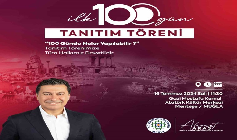31 Mart 2024 yerel seçimlerinde Muğla Büyükşehir Belediye Başkanı olan Ahmet Aras ilk 100 gün içinde gerçekleştirdiği projeleri kamuoyuna sunacak.