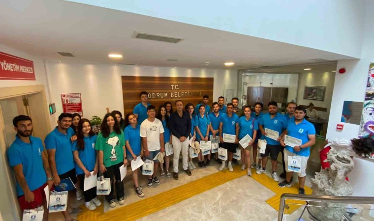 Bodrum Belediyesi Tarımsal Hizmetler Müdürlüğü tarafından düzenlenen Garaova Gençlik ve Tarım Kampı katılımcıları, Bodrum Belediye Başkanı Ahmet Aras’ı makamında ziyaret etti.
