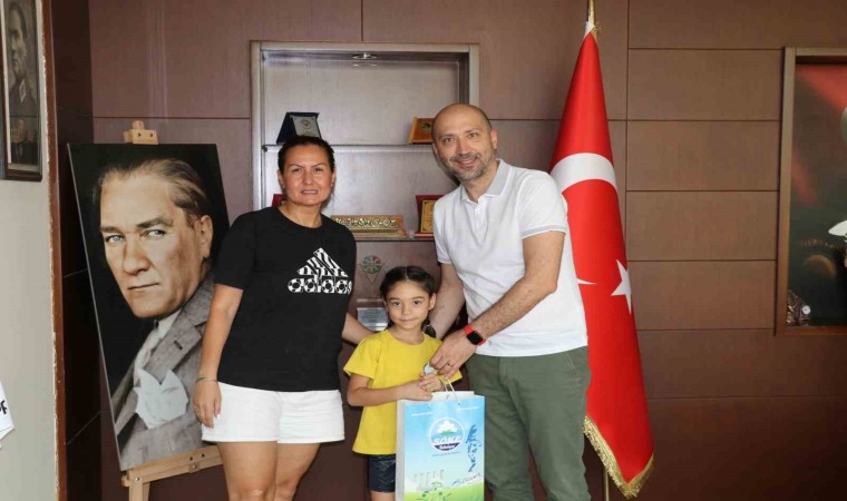 Aydın Okullar Arası Artistik Jimnastik yarışmasında 80 sporcu arasında Minik B kategorisinde birinci olan Asel Kumsal Çetin, Antrenörü Muzaffer Tuncay ile birlikte Söke Belediye Başkanı Dr. Mustafa İberya Arıkan’ı ziyaret etti. Milli Takım alt yapı takımına seçilen Asel Kumsal Çetin’in başarısına kayıtsız kalmayan Söke Belediye Başkanı Mustafa İberya Arıkan, minik sporcuyu makamında ağırladı, hediye takdim etti.
