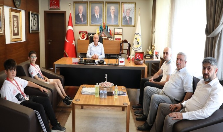 İlçe Gençlik Spor Müdürü Kadir Durak, Muay Thai Antrenörü Bülent Asa ve öğrenciler Belediye Başkanı Şerif Arslan’ı ve Başkan Yardımcısı Oktay Yelkuvan’ı makamında ziyaret etti. Başkan Arslan, öğrencileri bu başarılarından dolayı kutlayarak hediye verdi.