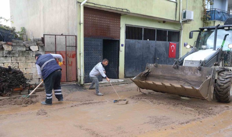 Efeler Belediyesi Fen İşleri Müdürlüğü’ne bağlı ekipler, yoğun yağışın etkili olduğu ilk andan itibaren tüm mahallelerde çalışmalarını aralıksız sürdürüyor. Kızılcaköy Mahallesi’nde selin etkilerini silmek için harekete geçen Fen İşleri Müdürlüğü ekipleri iş makineleri ile kapanan yolları açtı ve sel sularının tahliye edilmesini sağladı. Başkan Atay da ekiplerin çalışmalarını yerinde inceleyip sel mağduru vatandaşlarla buluştu, geçmiş olsun dileklerini iletti. Afetin yaşandığı ilk andan itibaren ekiplerin sahada hızla çalışmalarını sürdürdüğünü ifade eden Başkan Mehmet Fatih Atay, hayatın kısa sürede normale dönmesi için Efeler Belediyesi olarak sel mağduru tüm vatandaşların yanlarında olduklarını vurguladı.