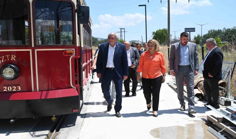 Başkan Bakkalcıoğlu daha sonra misafiri Başkan Hürriyet ve beraberindekilerle birlikte tramvaya binerek hangara gitti. Yol boyunca tramvayda, istasyonlarda ve hangarda incelemelerde bulunan Başkan Hürriyet, Başkan Bakkalcıoğlu’ndan proje hakkında detaylı bilgiler aldı.