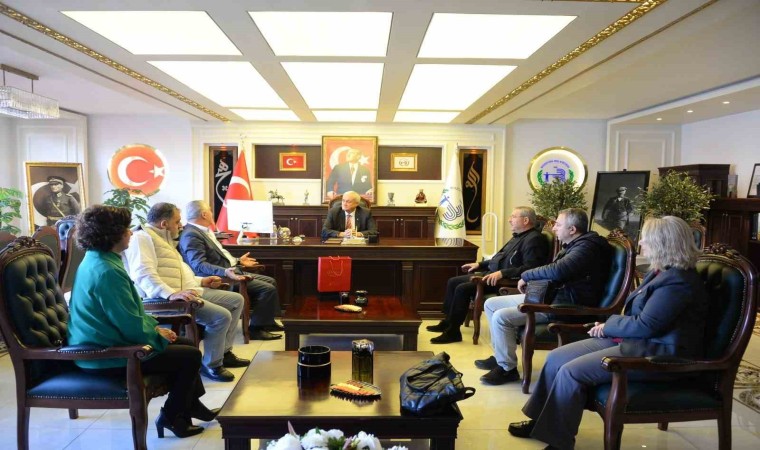 Başkan Bakkalcıoğlu’na nezaket ziyaretinde bulunan yeni İl Başkanı Özdemir ve beraberindekiler Başkan Bakkalcıoğlu ile bir süre görüşerek sohbet etti. Karşılıklı olarak fikir alışverişinde bulunulan ziyarette Başkan Bakkalcıoğlu İl Başkanı Özdemir’e ve yönetim kurulu üyelerine yeni görevlerinin hayırlı olması temennisinde bulunarak çalışmalarında başarılar diledi.