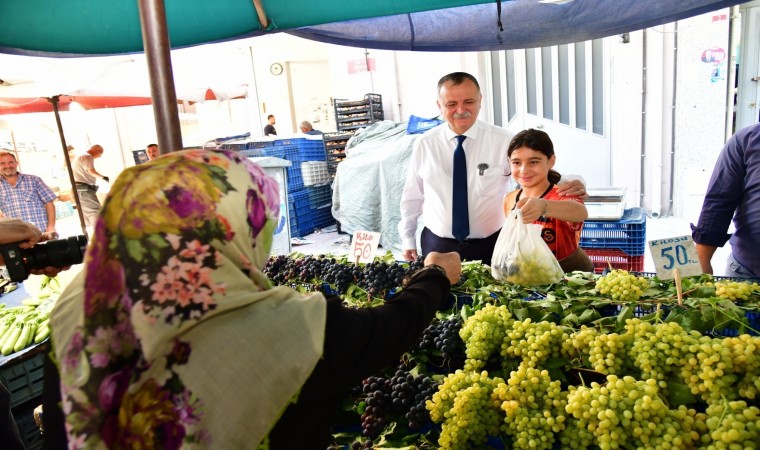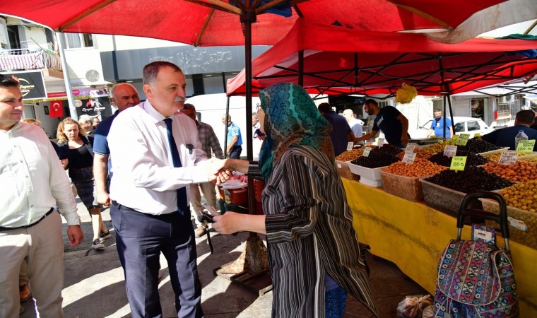 Yunusemre Belediye Başkanı Semih Balaban, Karaköy pazar yerinde esnaf ziyareti yaptı.