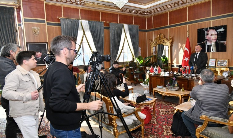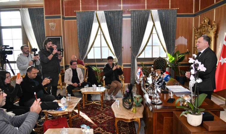 Basın toplantısının ardından Başkan Balaban basın mensuplarıyla hatıra fotoğrafı çektirdi.