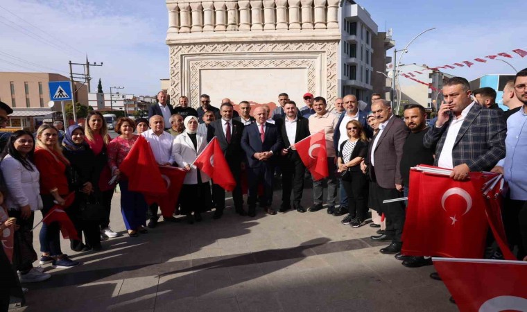 Darıca Belediyesi, Cumhuriyetin 100. yılı dolayısıyla ilçe genelini bayraklarla süslerken Belediye Başkanı Muzaffer Bıyık da esnafa Türk bayrağı dağıttı.