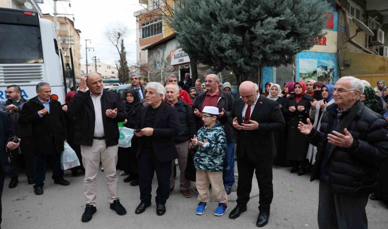 Uğurlama töreninde ailelerin heyecanına ortak olan Başkan Bıyık, okunan Kur’an-ı Kerim ve edilen duaların ardından umre yolcularıyla vedalaştı.