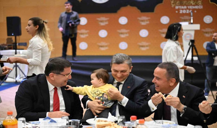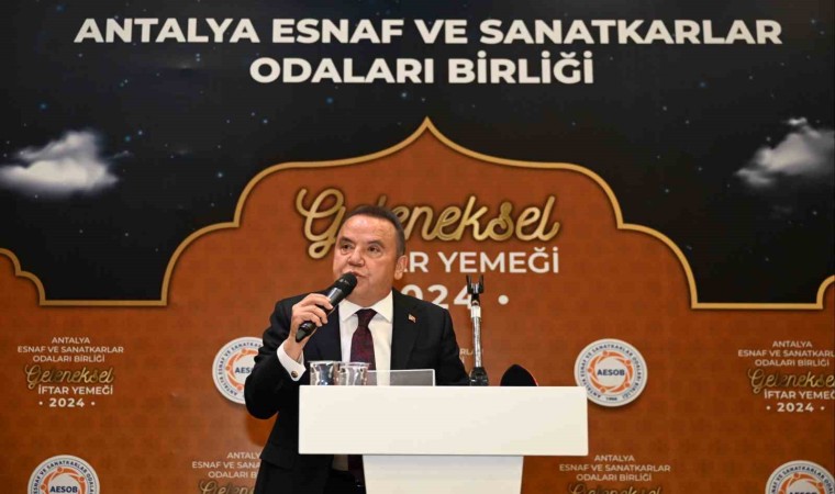 Antalya Büyükşehir Belediye Başkanı Muhittin Böcek, esnaf ziyaretinin ardından iftarını da esnaf sofrasında yaptı. Antalya Esnaf ve Sanatkarları Odaları Birliği Başkanı Adlıhan Dere’nin ev sahipliğinde düzenlenen iftar yemeğinde, Vali Hulusi Şahin, CHP İl Başkanı Nail Kamacı, kurum, kuruluş, oda ve siyasi parti temsilcileriyle bir araya gelen Başkan Böcek, birlik ve beraberliğin önemine dikkat çekti. 105 bin üyesi olan AESOB’a teşekkür eden Başkan Muhittin Böcek, her zaman esnafın yanında olduklarını söyledi. Böcek, iftara katılan tüm siyasi partilere de seçim sürecinde başarılar diledi.